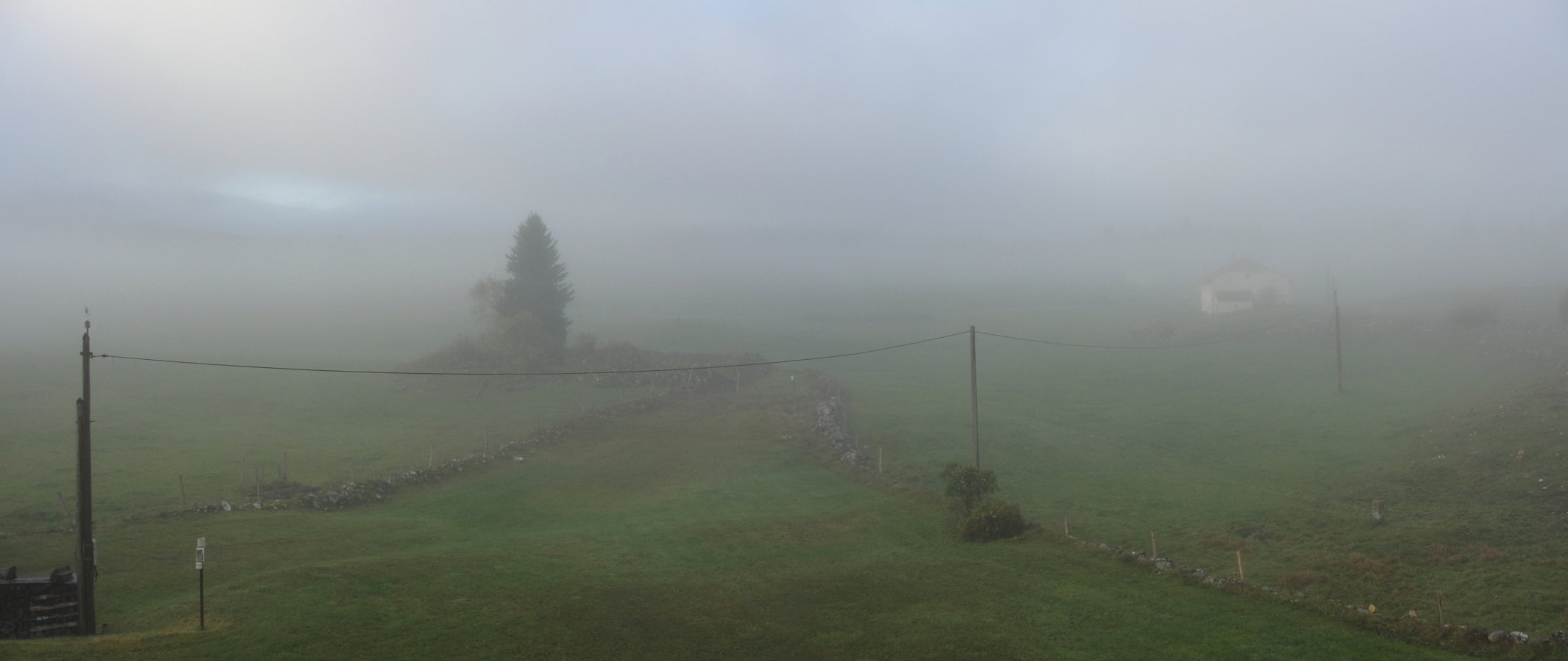 matin, au lever du jour, la brume est encore là,