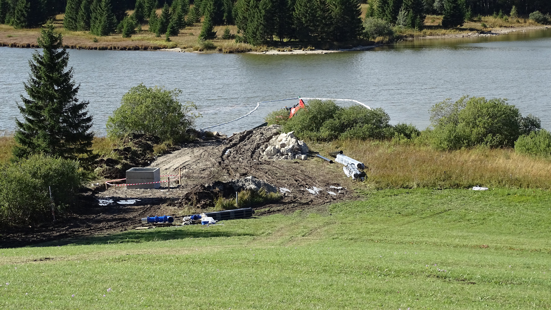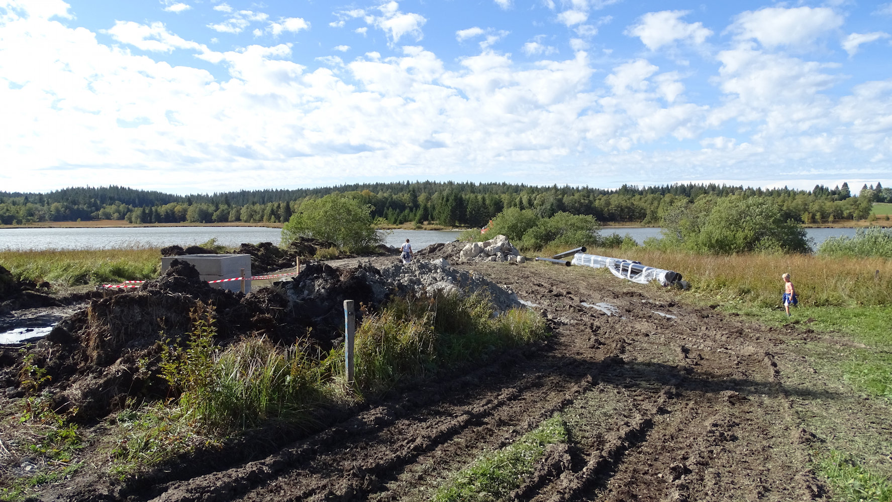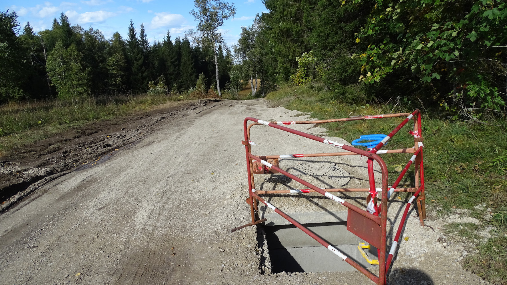 La conduite est enfouie sous la petite route qui vient de