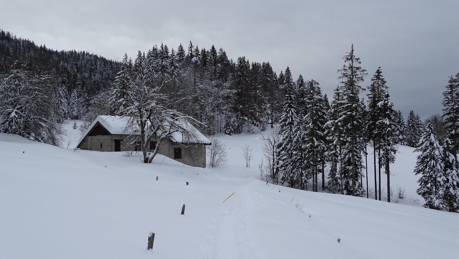 Retour vers Chez l'Aimé, au fond on devine une maison,
