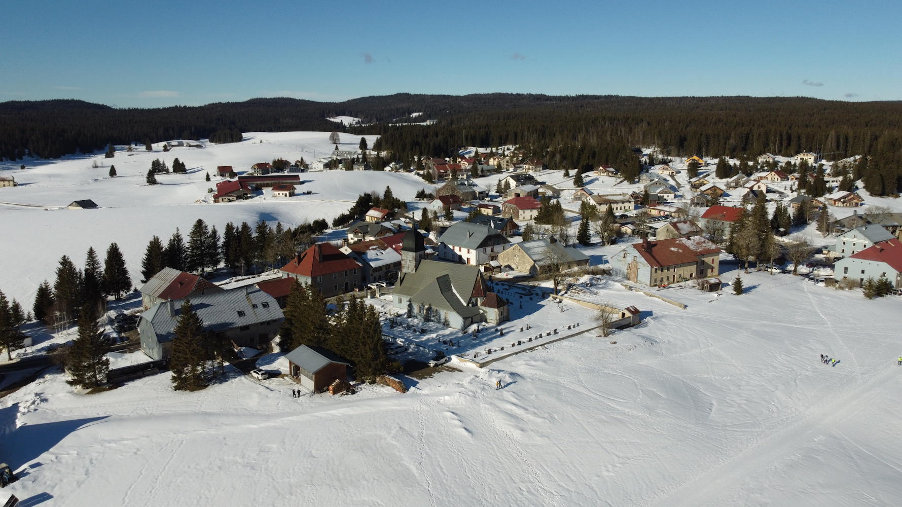 Chapelle des Bois vu du ciel, la transjurassienne 25 km en