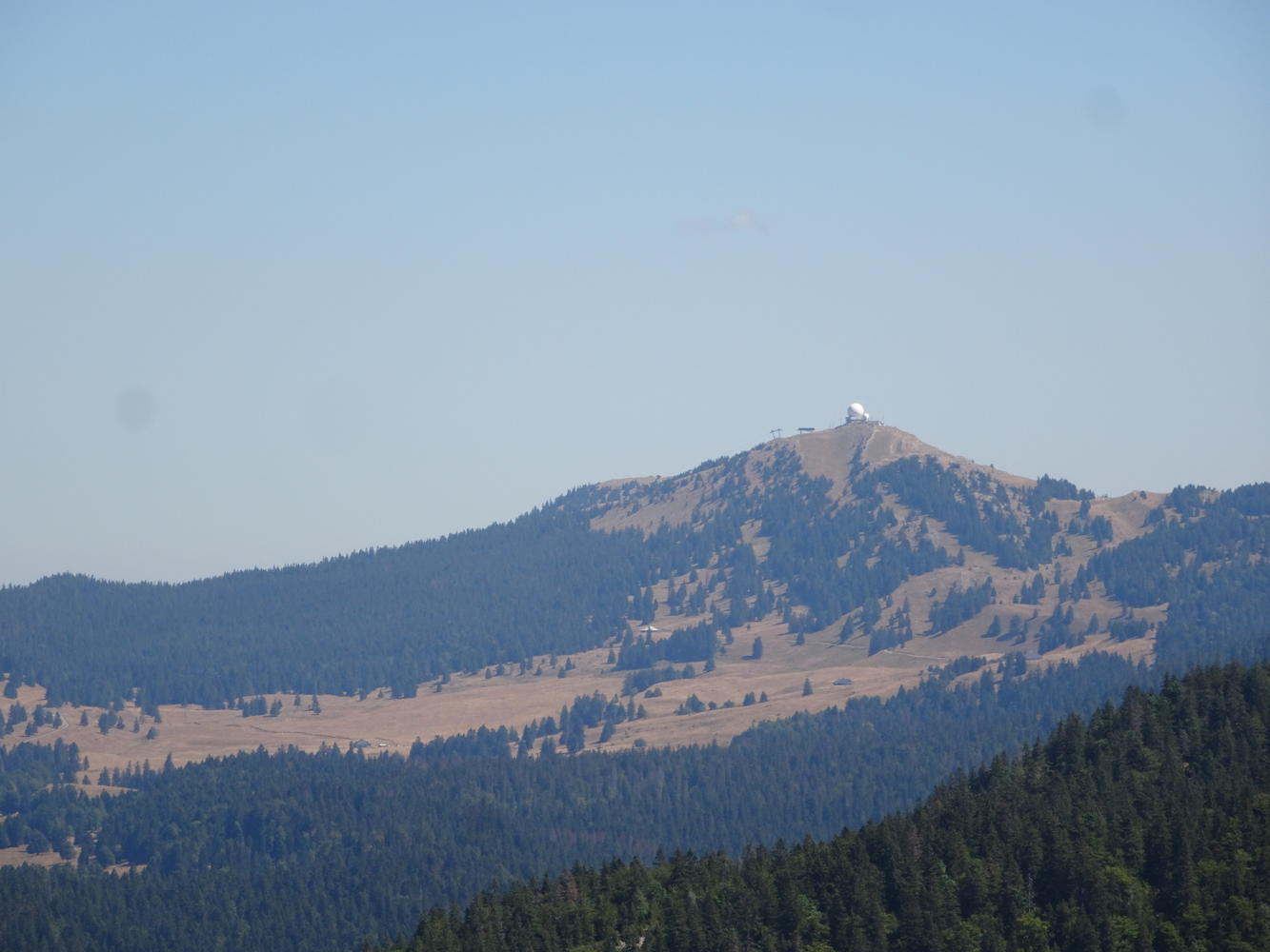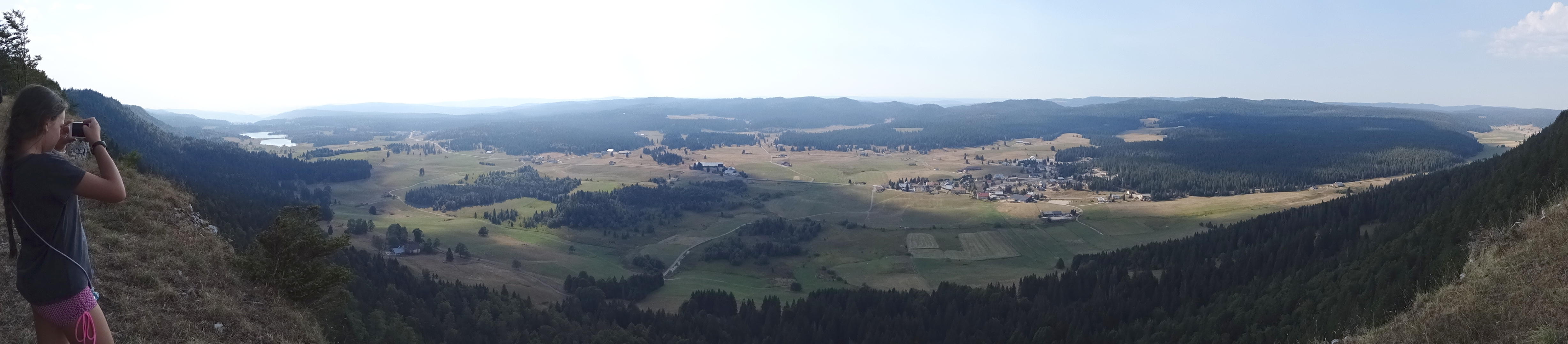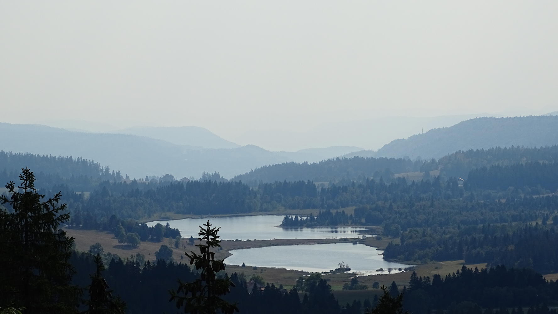 Panorama depuis la Croix du Risoux, la fumée des incendies du bas Jura floute totalement la visibilité