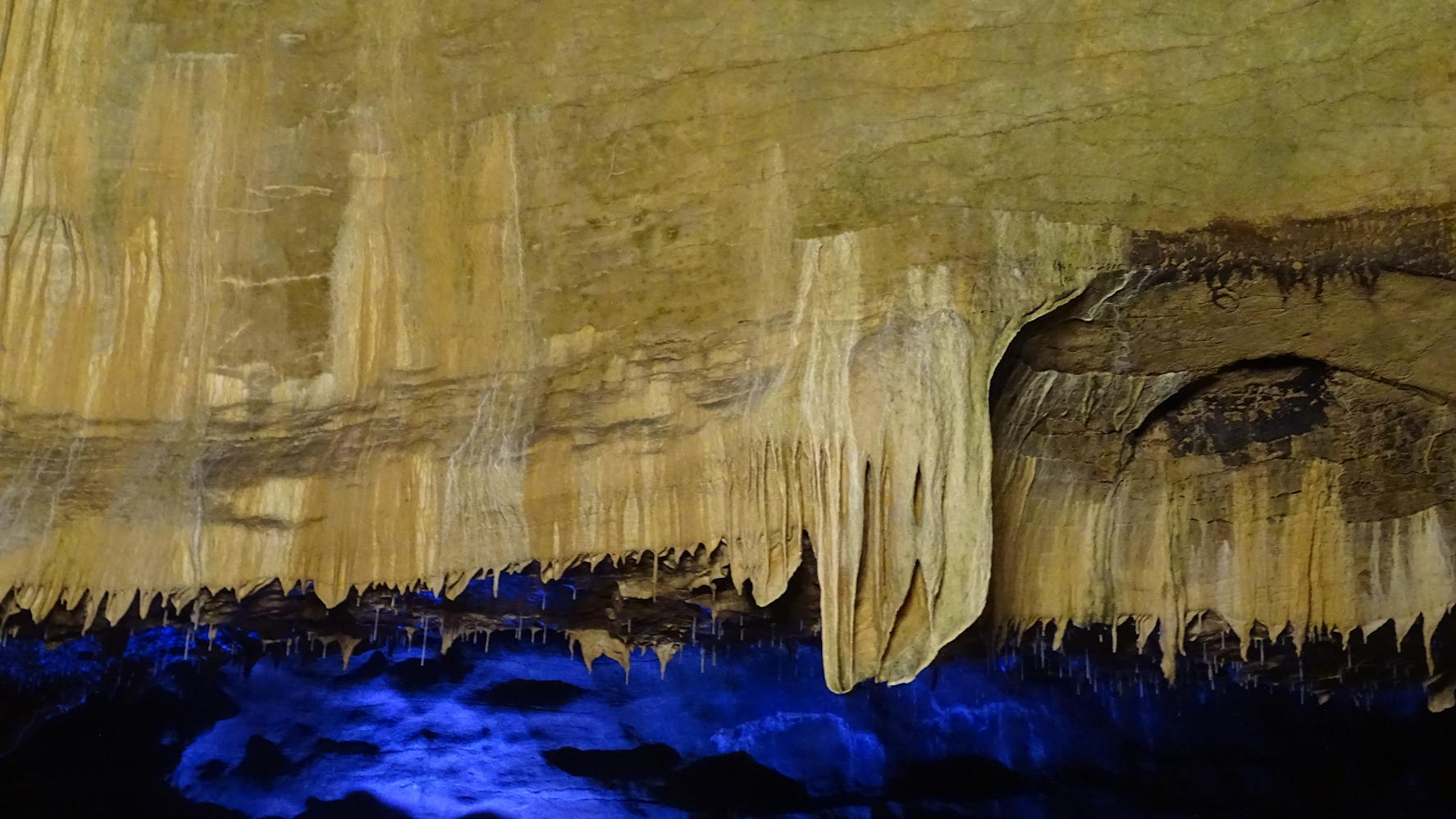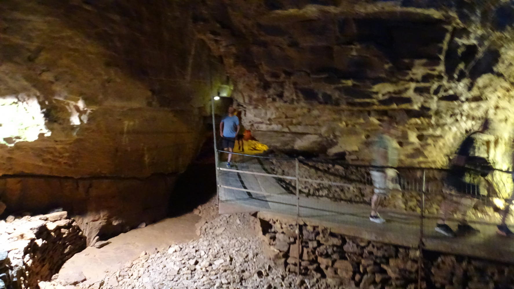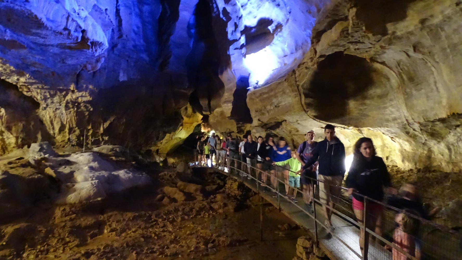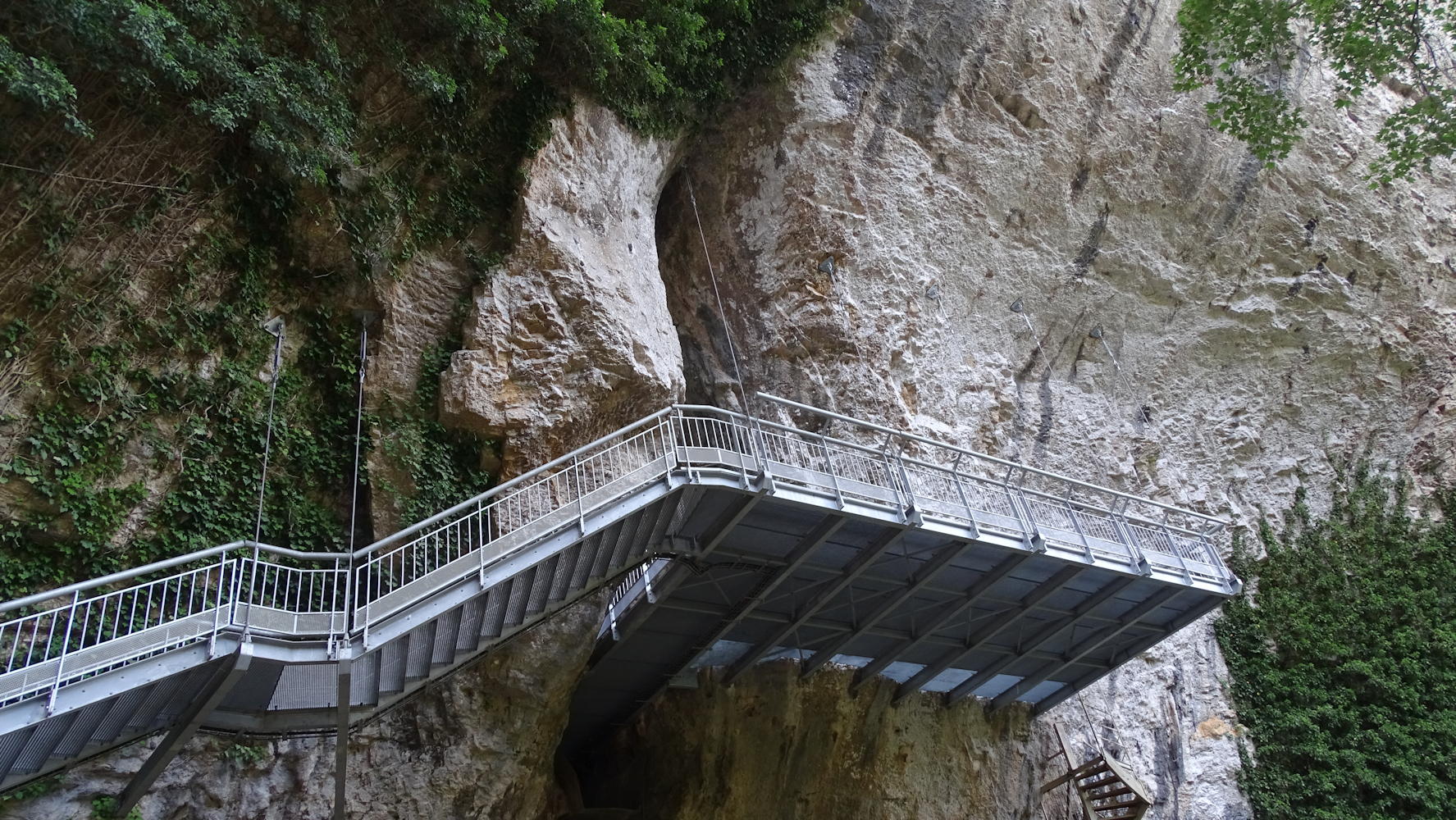 Au flanc de la falaise, la passerelle pour entrer dans la grotte