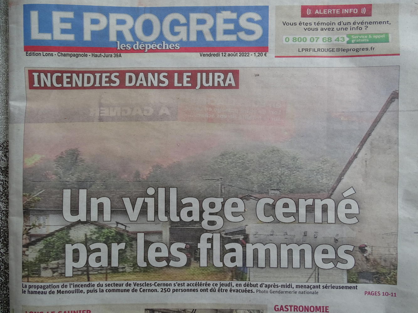 Vers le Sud Est, une colonne de fumée, par internet on apprend que c'est un gros incendie de Forêt dans les parages de Vouglans