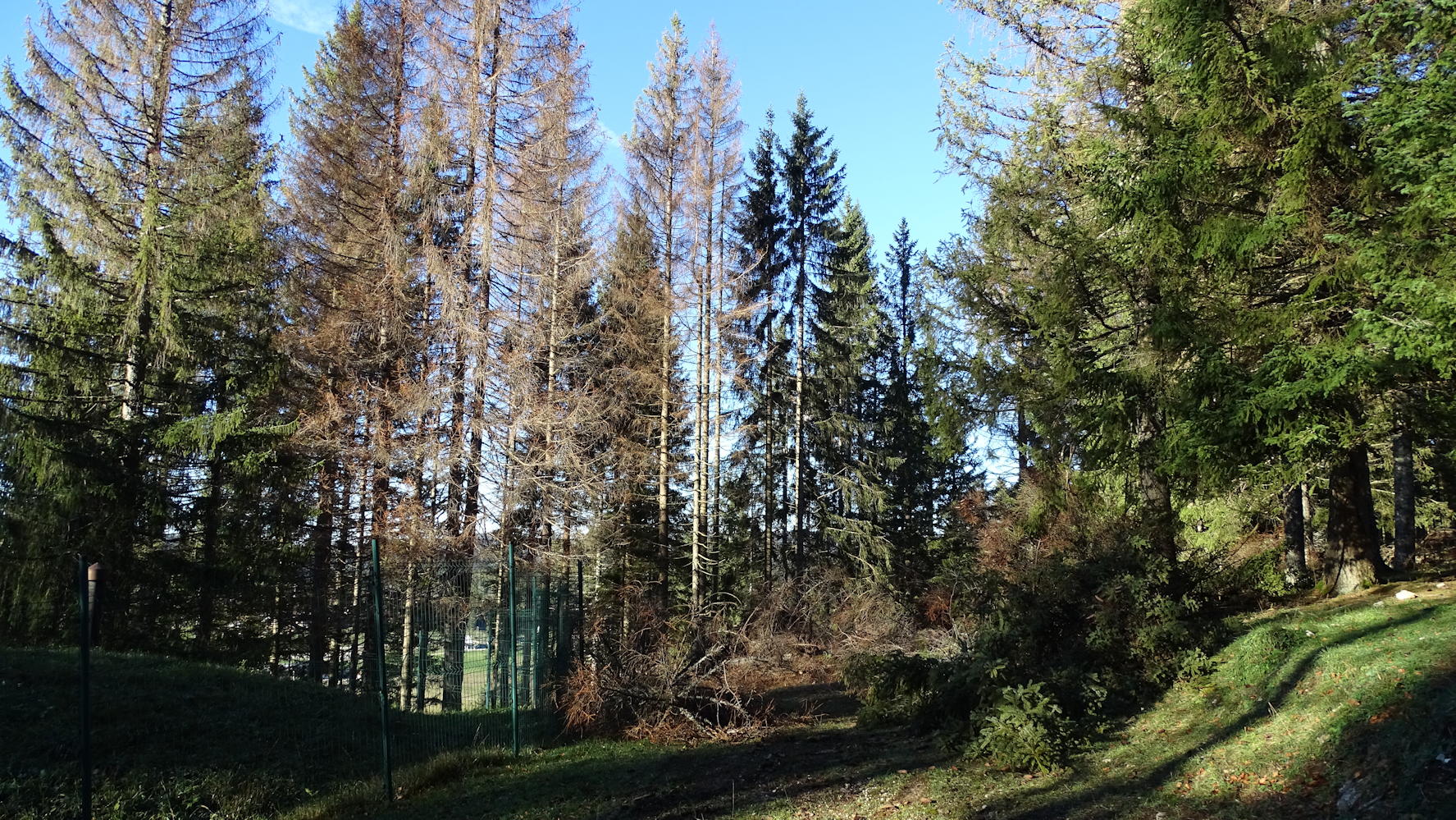 Vers le réservoir d'eau les épicéas n'ont pas supporté la sécheresse de septembre