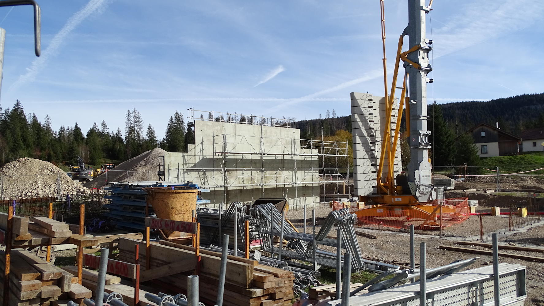 Au niveau du bâtiment, un mur coupe feu en cours de coffrage