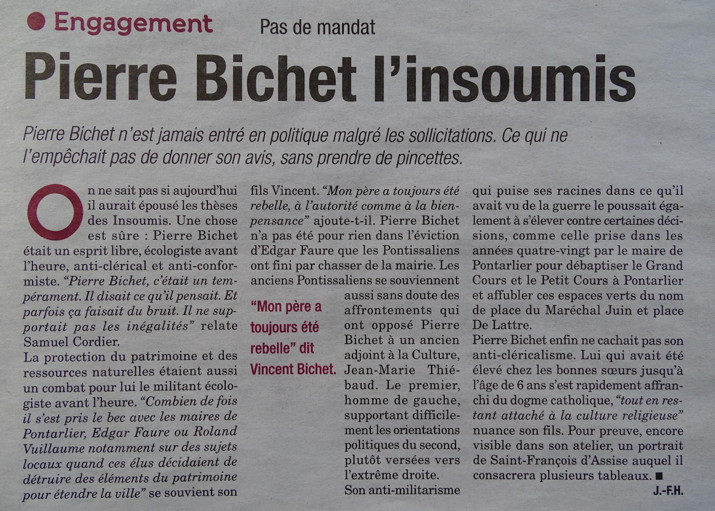 Un bel hommage à notre peintre régional dans "La Presse Pontissalienne" de novembre.