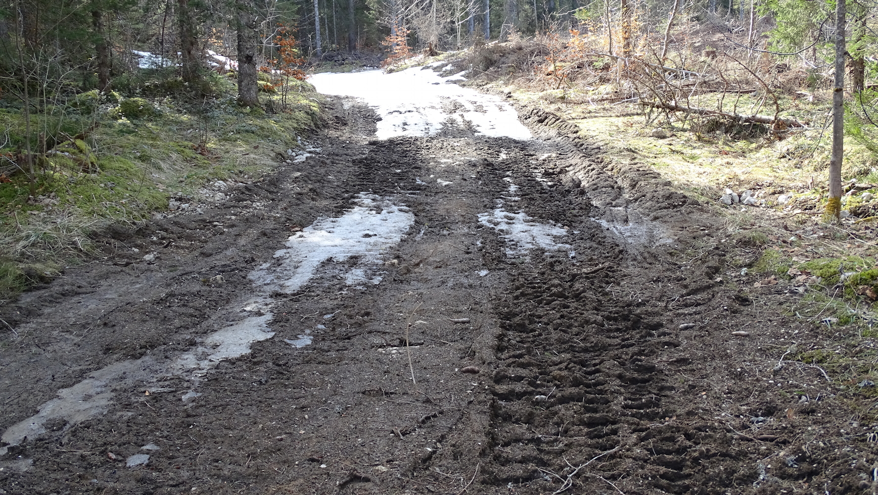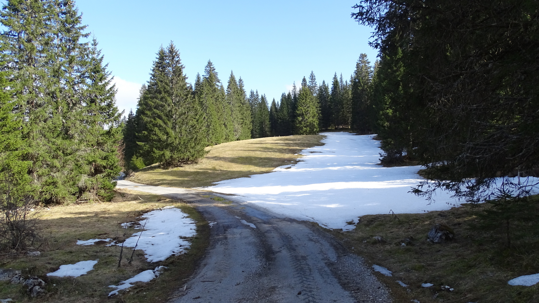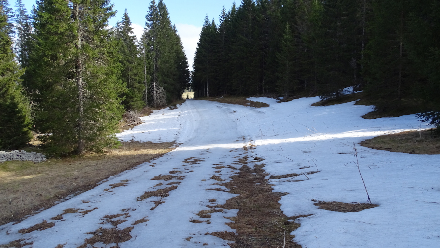 Quelques traces de neige sur la piste de la Chaumoz