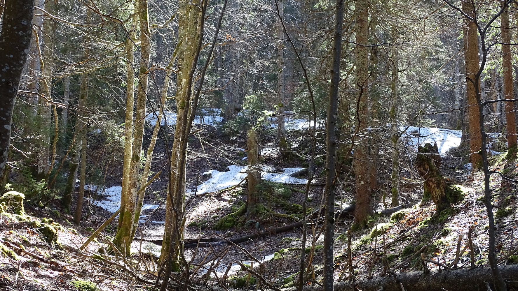A l'ombre des grands arbres, encore un peu de neige