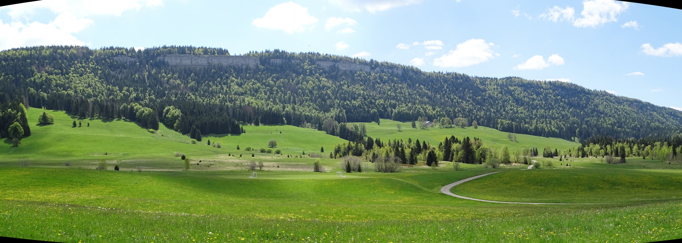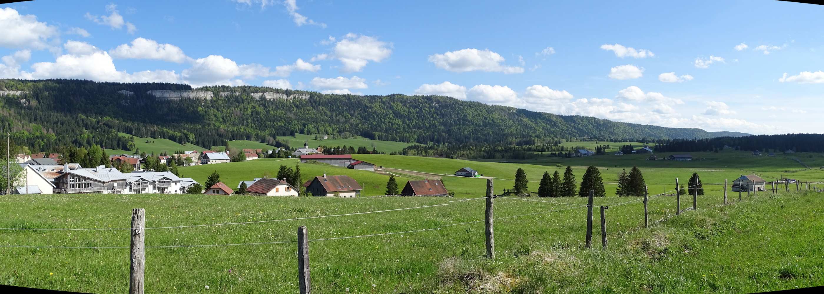 Panorama depuis le crêt de Beauregard, une borne IGN
