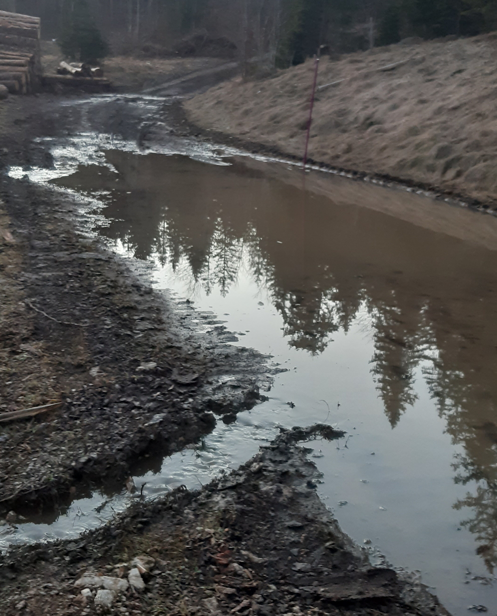 Nous avons encore du boulot dans la préparation des pistes, comme ici, il faut faire la chasse aux gouilles d'eau