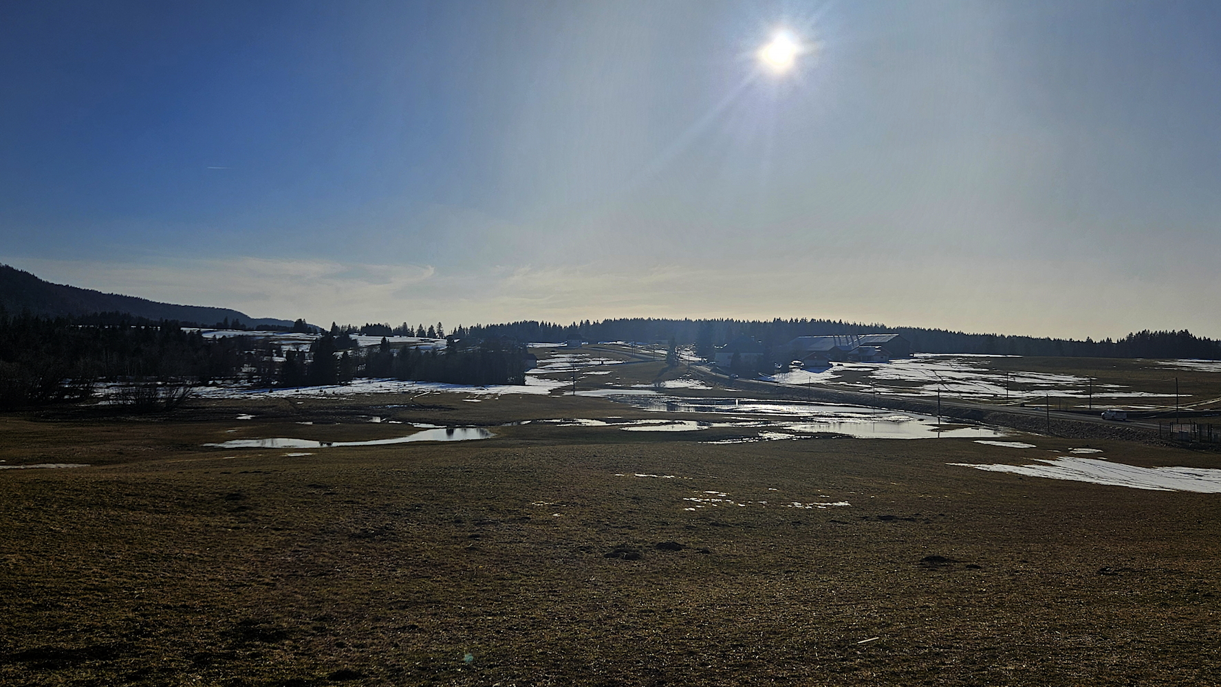 La neige de fonte reconstitue notre mare en bas du village